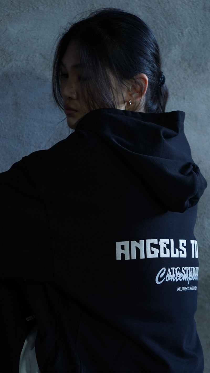The Angels To God 'Flying Angels' Print on our Black T-Shirt. The artwork explores depth, Designed for those who move with intention.